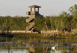 The park’s most iconic residents are the American alligators, but it also houses river otters, wild pigs, white-tailed deer, and well over 300 species of birds.