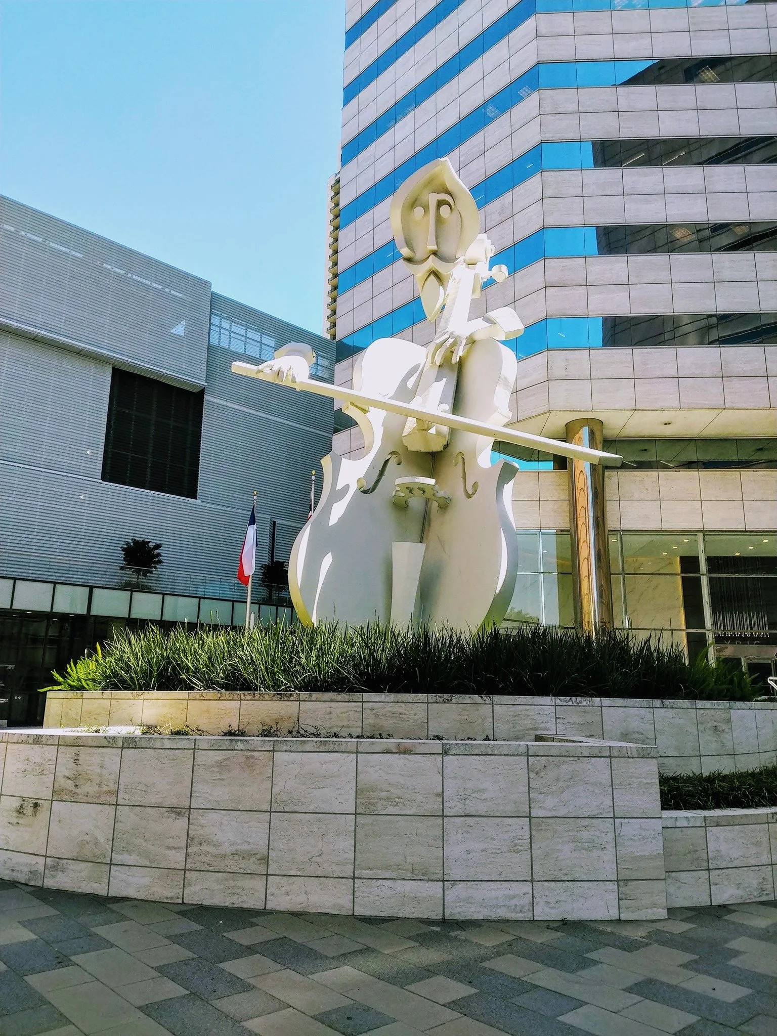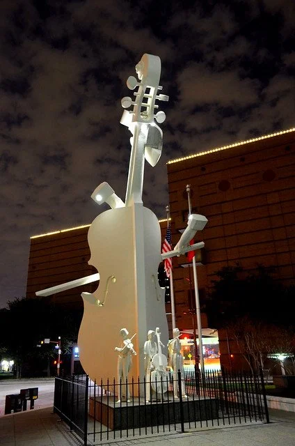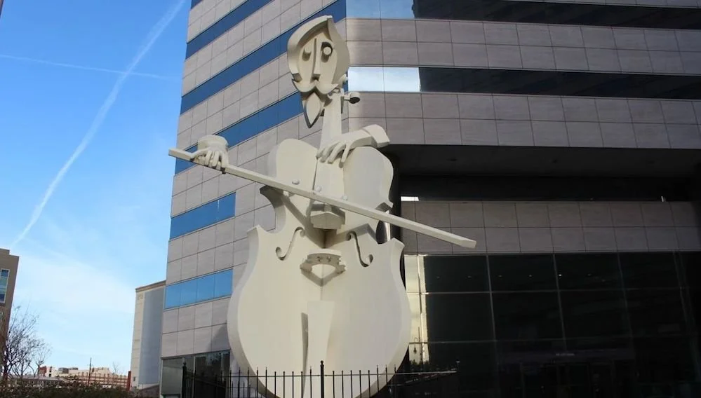 Virtuoso has the distinction of being the first larger-than-life sculpture to emerge from the hands of artist and sculptor David Adickes. In the early 1980s, he created the 36-foot tall, 21-ton sculpture on a commission from the developer of Lyric Centre, the office building behind it.