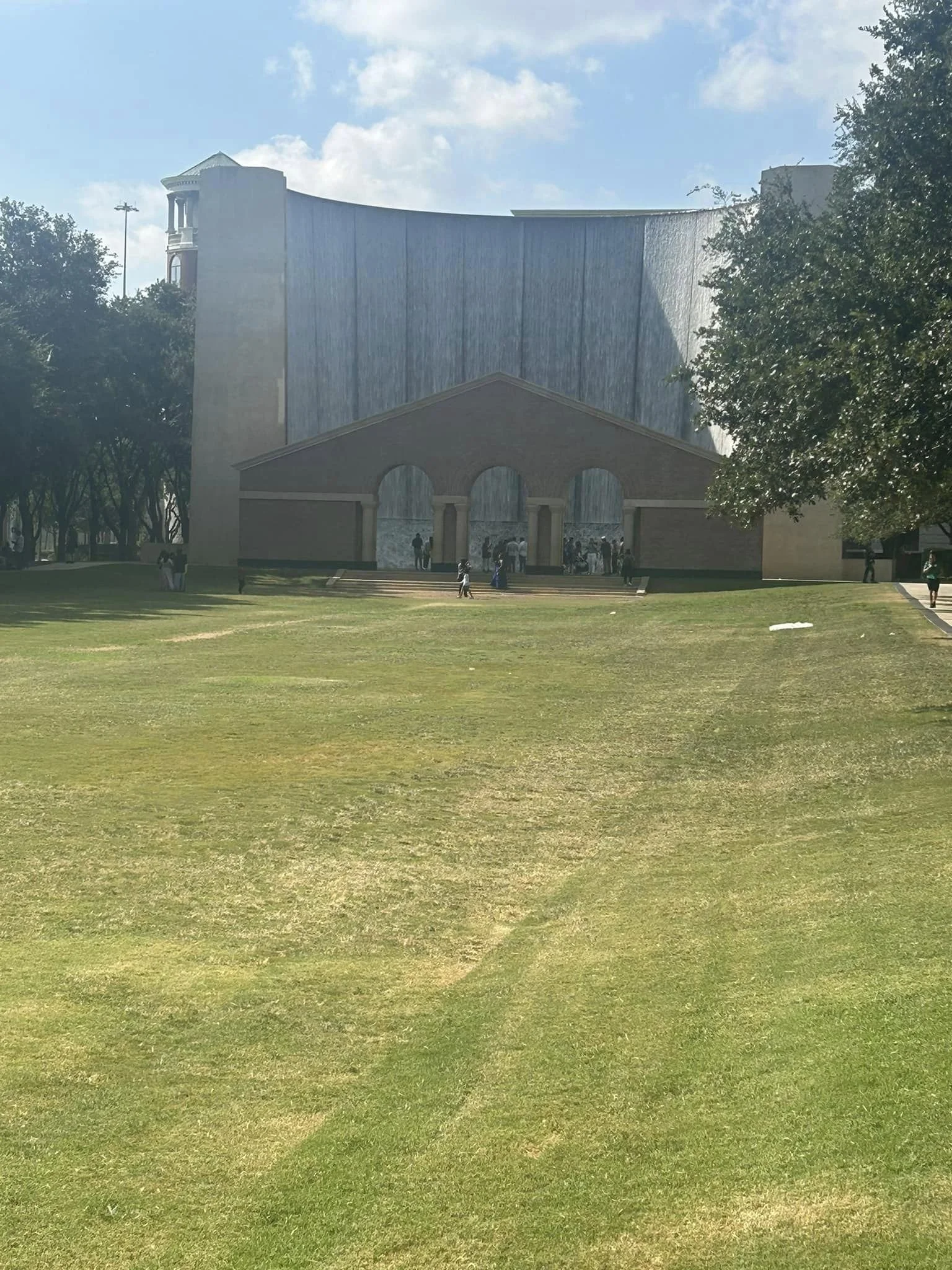 Exterior ribs are pre-cast concrete with Alamo Gray cement