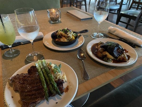 An airy, modern interior sets the stage for a rustic menu featuring salad, steak & sandwiches.