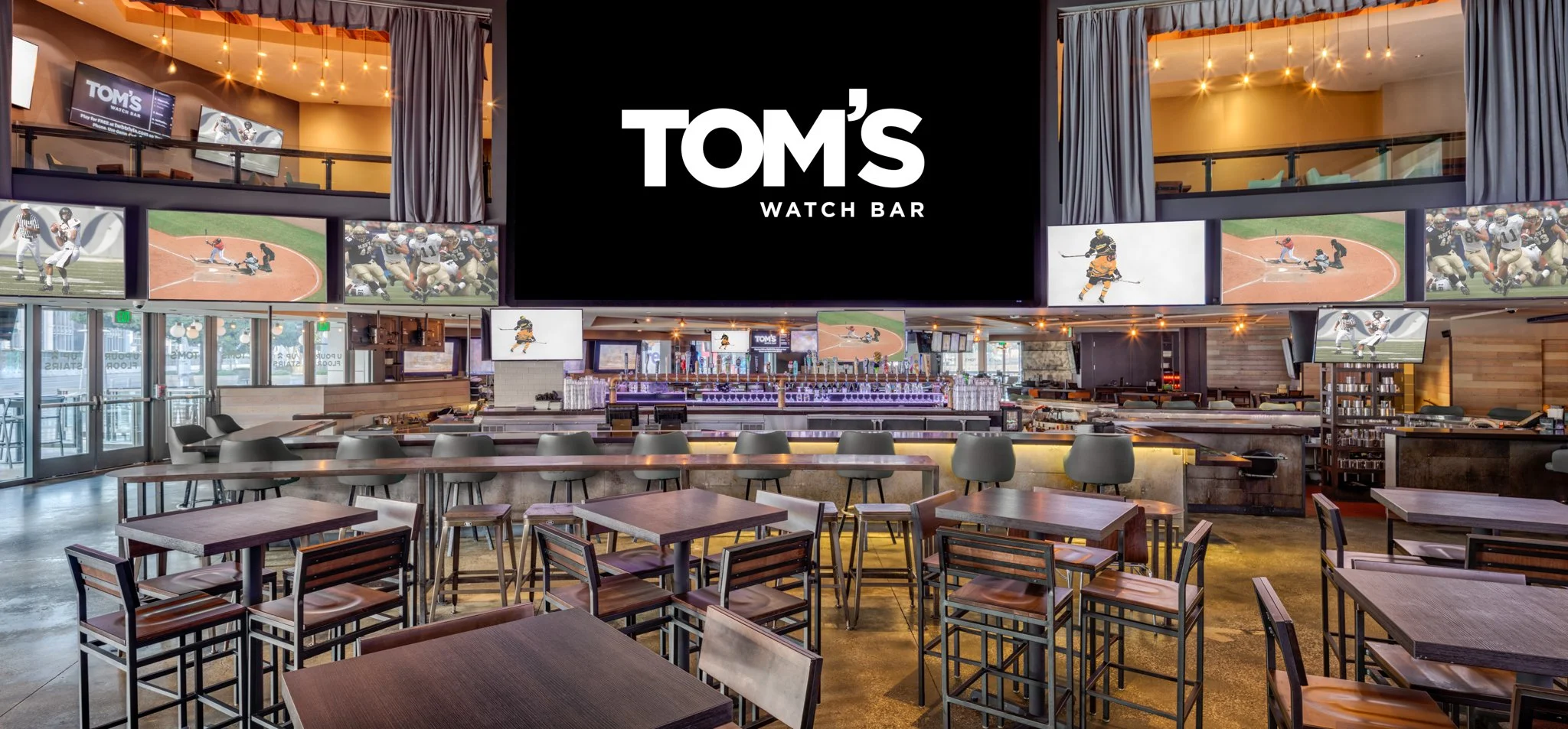 Breaking the mold of the traditional sports bar, Tom’s Watch Bar provides guests with an elevated 360-degree viewing room complete with personalized audio at every table. From professional and college games to emerging and outrageous sports, every seat at Tom’s is the best seat in the house. The 6,600-square-foot bar and restaurant boasts 75 high-definition screens anchored by central oversized “stadium” screens and seats nearly 300 guests offering indoor seating and an expansive outdoor patio facing the Toyota Center.