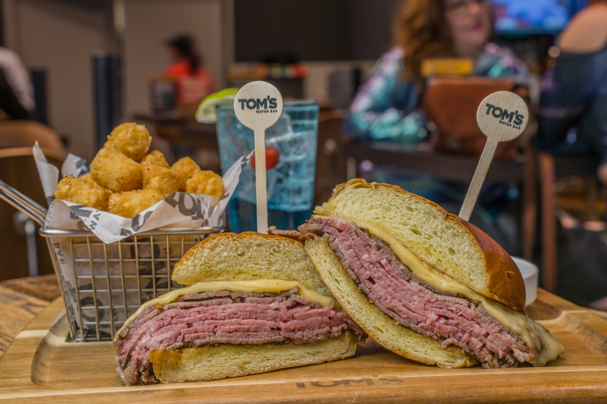 With dozens of taps, Tom’s Watch Bar offers a wide array of domestic, imported, craft seasonal and local micro-brews, all available in Tom’s signature two-handed 40oz stein. Rounding out the bar menu is a selection of craft cocktails and an approachable wine list. The food menu features elevated sports bar fare and signature eats to satisfy any hungry sports fan.